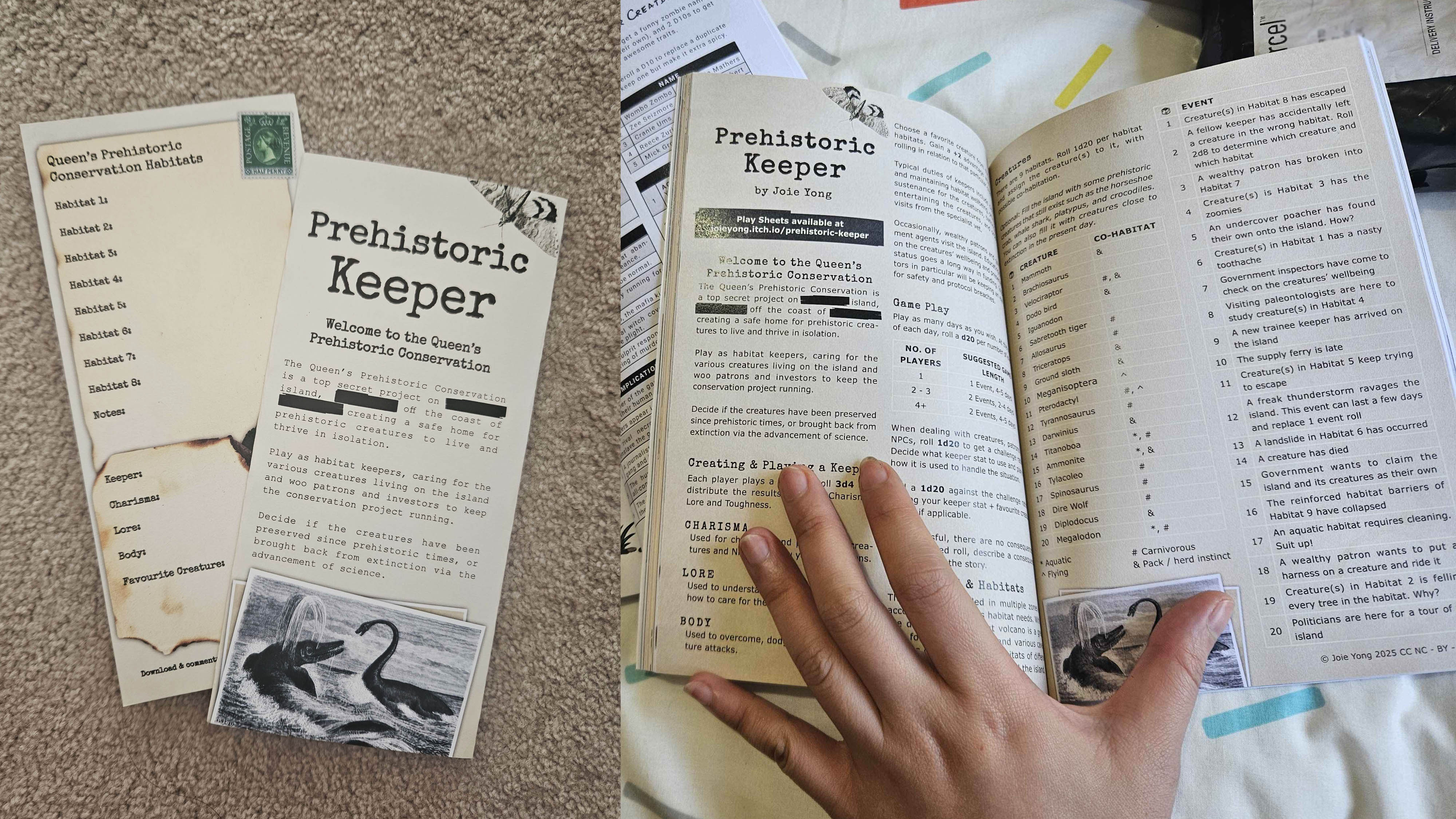 Care for prehistoric creatures in this one-page TTRPG, solo or as a group, with or without a GM.