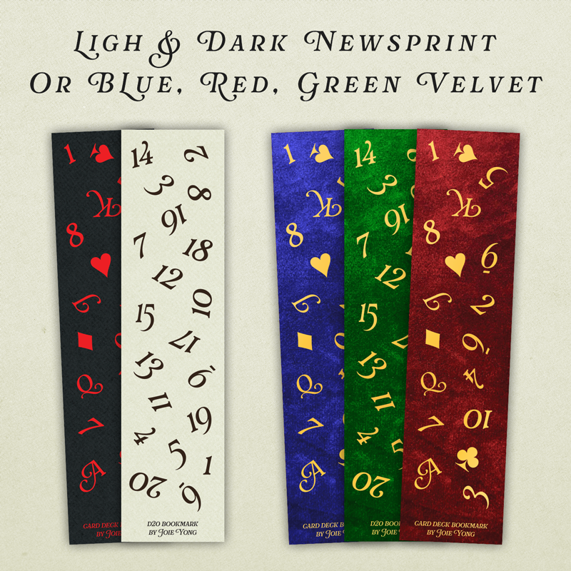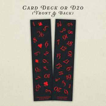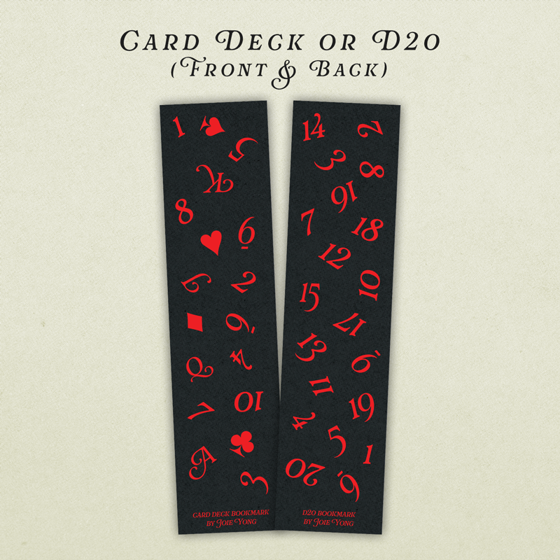 Use in place of dice and card decks when you're traveling, on-the-go, or just don't have any of them on hand. Print whichever design you wish, single-sided or DIY your own for a double-sided bookmark.