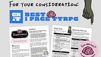 For your consideration: Zombieees for Crit Awards Best 1 Page TTRPG If you've played and enjoyed the game, please consider nominating and/or voting for it at the Crit Awards 2025. I'm gonna be real, I...